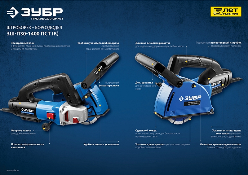 Преимущества штробореза Зубр Профессионал ЗШ-П30-1400 ПСТ: